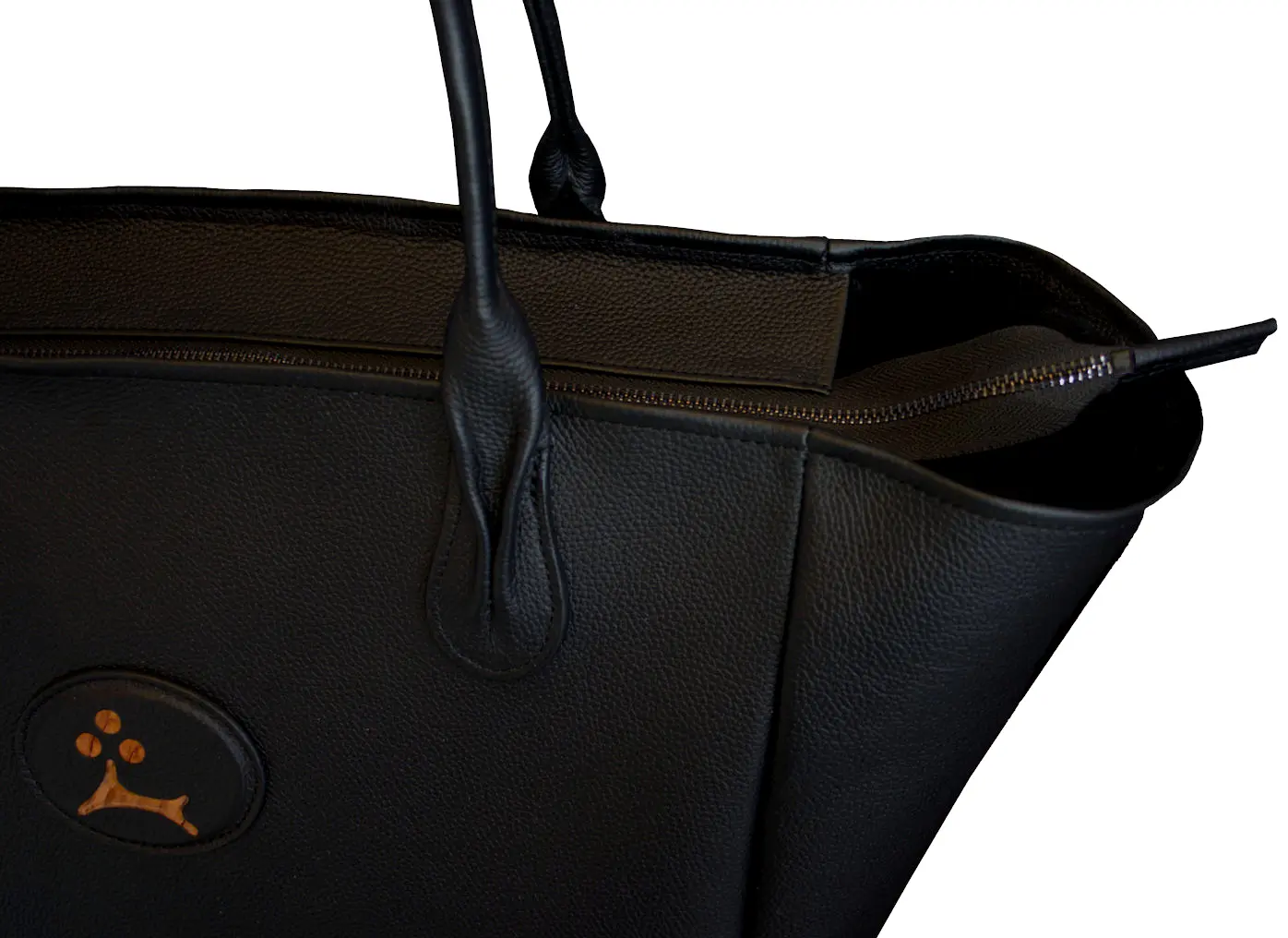Fermeture du sac par fermeture à glissière (zip) en métal anodisé noir.